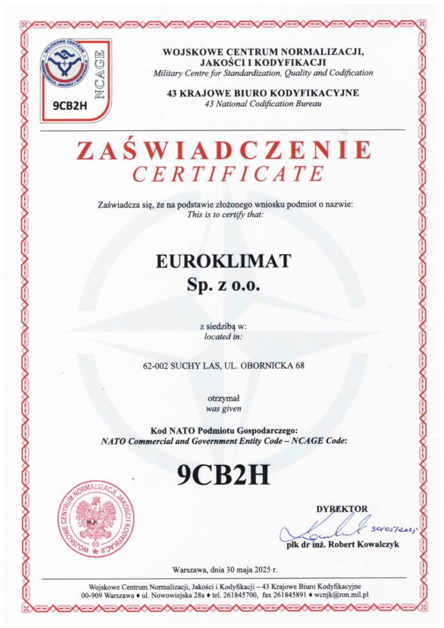 Z dumą informujemy, że nasza firma otrzymała certyfikat potwierdzający nadanie Kodu NATO Podmiotu Gospodarczego (NCAGE).